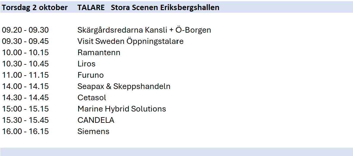 VÄLKOMNA till Skärgårdsredarnas Leverantörsmässa 2 okt 2025 Start Nyheter VÄLKOMNA till Skärgårdsredarnas Leverantörsmässa 2 okt 2025 Publicerad 30 september 2025 Visa fler nyheter